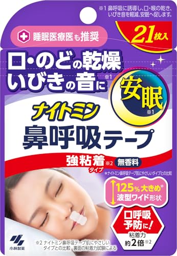 ナイトミン 鼻呼吸テープ 口・のどの乾燥・いびきの音を軽減 口呼吸予防に 強粘着タイプ 無香料 21枚入