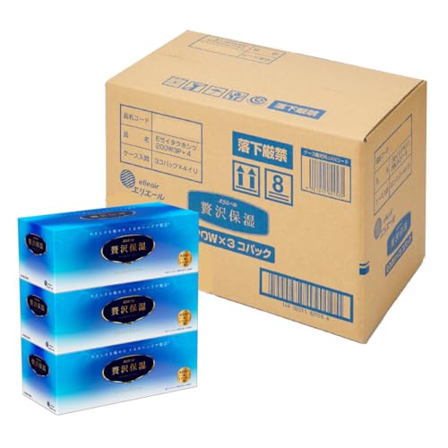 エリエール 箱ティシュー 贅沢保湿 200組×12箱(3箱×4パック) パルプ100% 【EC限定 正規段ケース】 【ハーフケース】