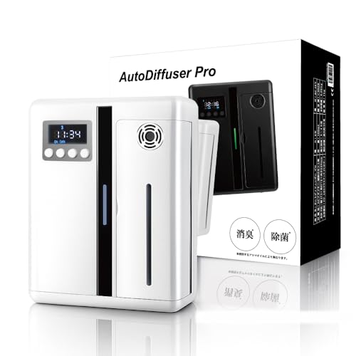 オートディフューザープロ ネブライザー式 アロマディフューザー|水不要・24時間自動運転|5秒刻み噴霧調整|大容量200ml|壁掛け&置き型|強力拡散・PSE認証(ホワイト)
