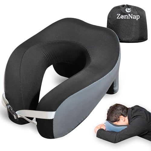 【現役医師監修】 昼寝 枕 うつ伏せ 仮眠 快適 まくら デスク オフィス リラックス 低反発 ネック ピロー 腕が痺れない 収納袋 付き ZenNap (ブラック)