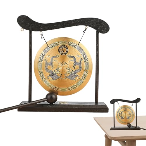 中国の功 – 中国の風水禅功鐘 スタンドとマレット付き – 太極のシンボル付きドラゴン、デスクトップレトロチャイム、テーブル瞑想デスク長期使用に最適で、マインドフルネスとリラクゼー