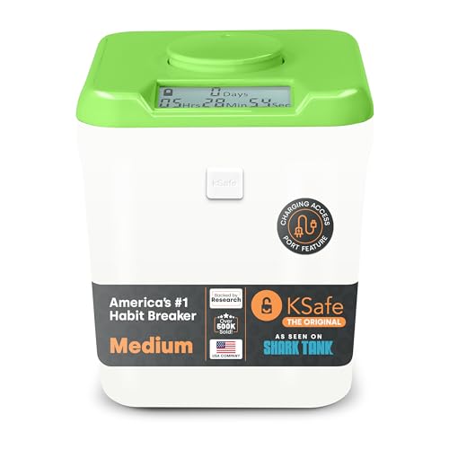 Kitchen Safe タイムロッキングコンテナ(Mサイズ)、スマートフォン、お菓子、その他禁欲的なタイムロックボックス(緑の蓋+アクセスポート付き14cmの白のベース)