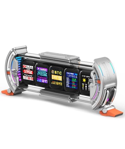 Divoom Times Gate 5Wayデジクロック スチームパンク風 PCデスクを彩る 近未来 ガジェット RGBライト【5スクリーン自由DIY:時計/天気予報/ピクセル作品/写真/SNSファンの数/カレンダー など対応】専用アプリ WiFi接続 ゲーマーのプレゼント(チタンシルバー)