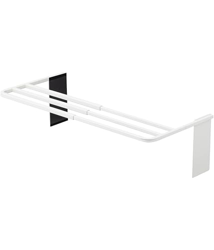 山崎実業(Yamazaki) マグネット伸縮洗濯機バスタオルハンガー ホワイト 約W43XD32XH18cm プレート タオル掛け 置き棚 4875