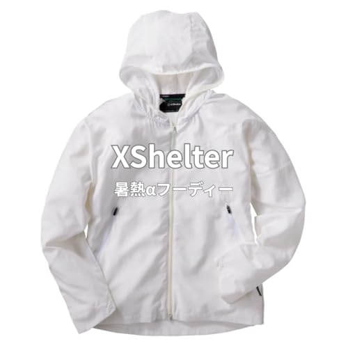 【UPF50+/16機能】ワークマン エックスシェルター暑熱αフーディー ホワイト|暑熱軽減パーカー UVカット・遮熱・接触冷感・吸汗速乾・超軽量|UVサーモアラート搭載 夏用ゴルフ・通勤・熱中症対策 (JP, アルファベット, M)