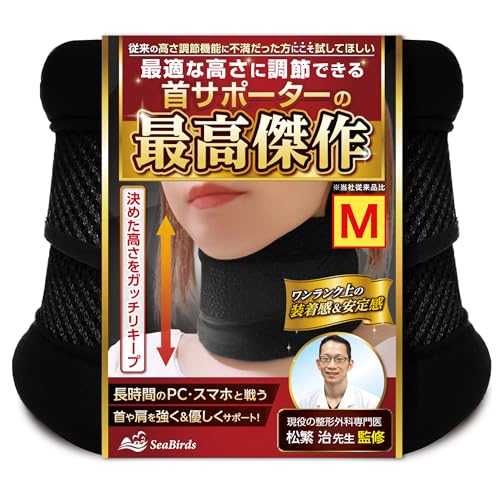 【整形外科医監修】 首 サポーター コルセット プレミアム 頸椎 頚椎 カラー 【高さ調節式の最高傑作】 薄型 洗える 軽量 メッシュ 通気性 クッション SeaBirds (M)